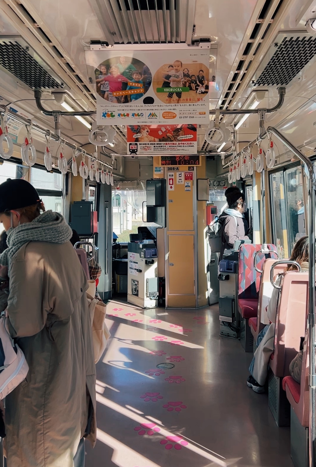 In 2017, Tokyu Railways began to operate “Kofuku-no-Manekineko Densha” or the train of beckoning cat for the train service of Setagaya Line. The train is decorated with beckoning cat illustrations in the body and inside. A cute cat cartoon appears in the front and back of the train. On the inside, we can see a lucky cat’s hanging straps and paws on the floor.